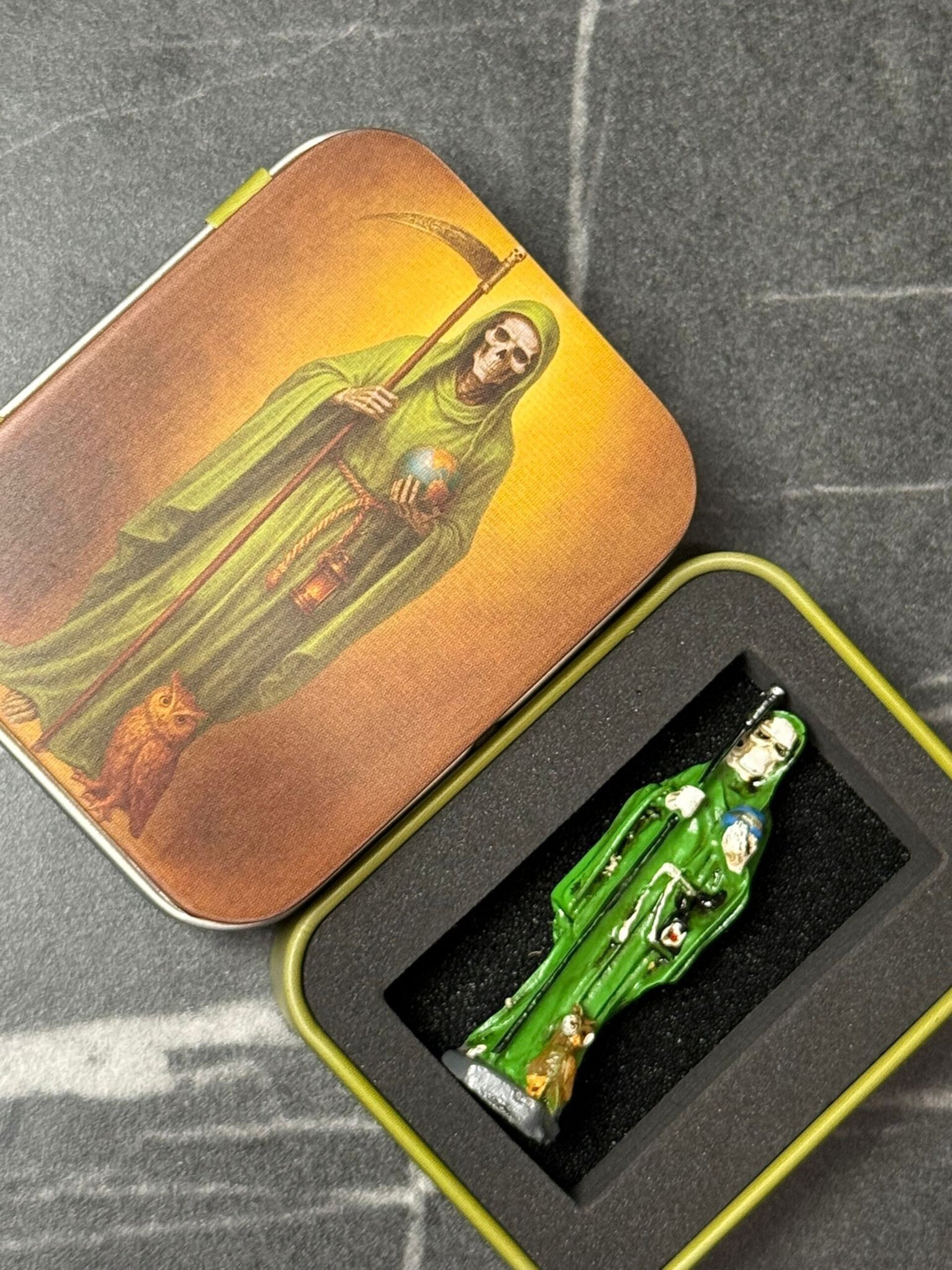 Santa Muerte Verde 5cm en lata