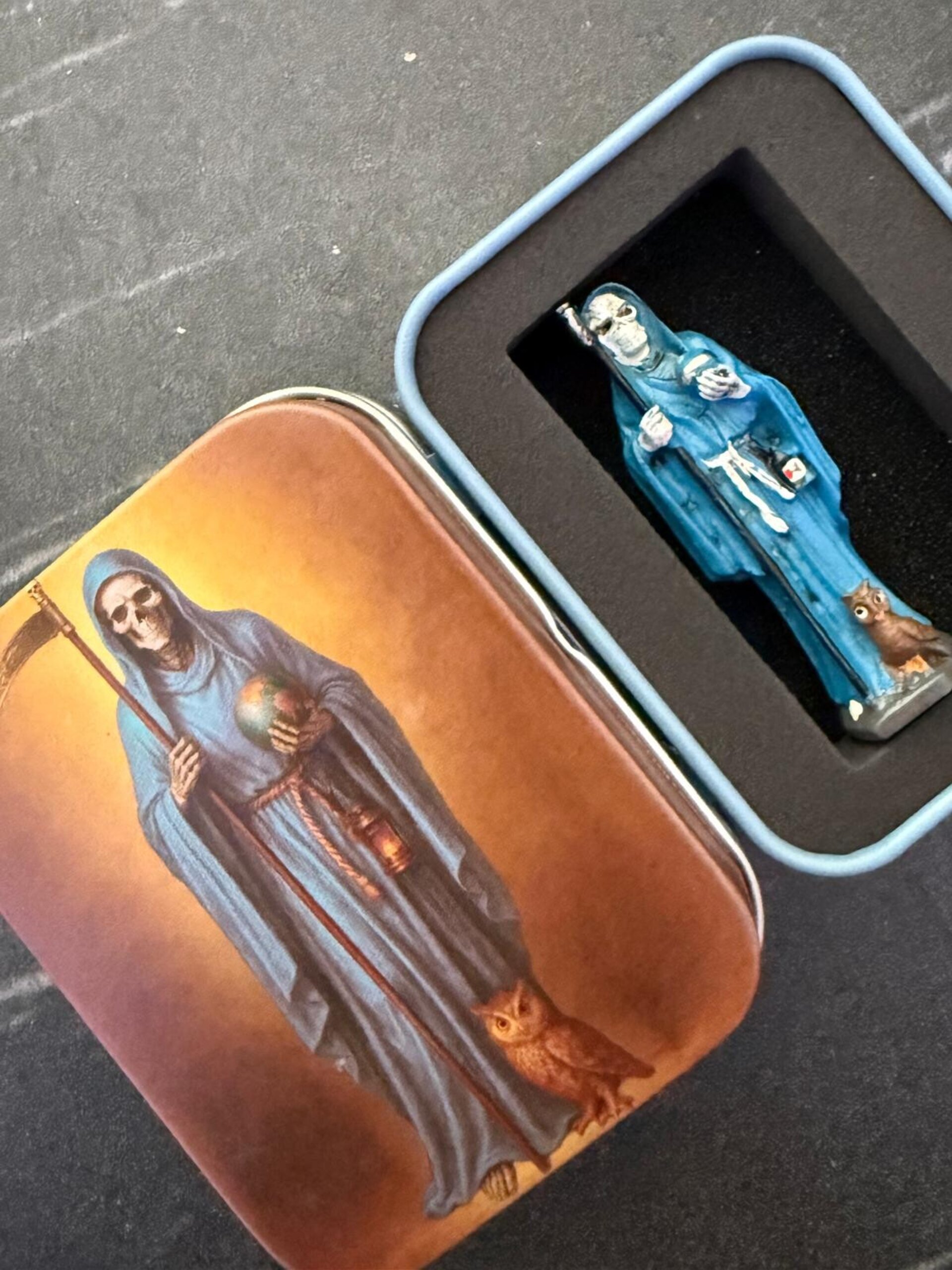 Santa Muerte Azul 5cm en lata