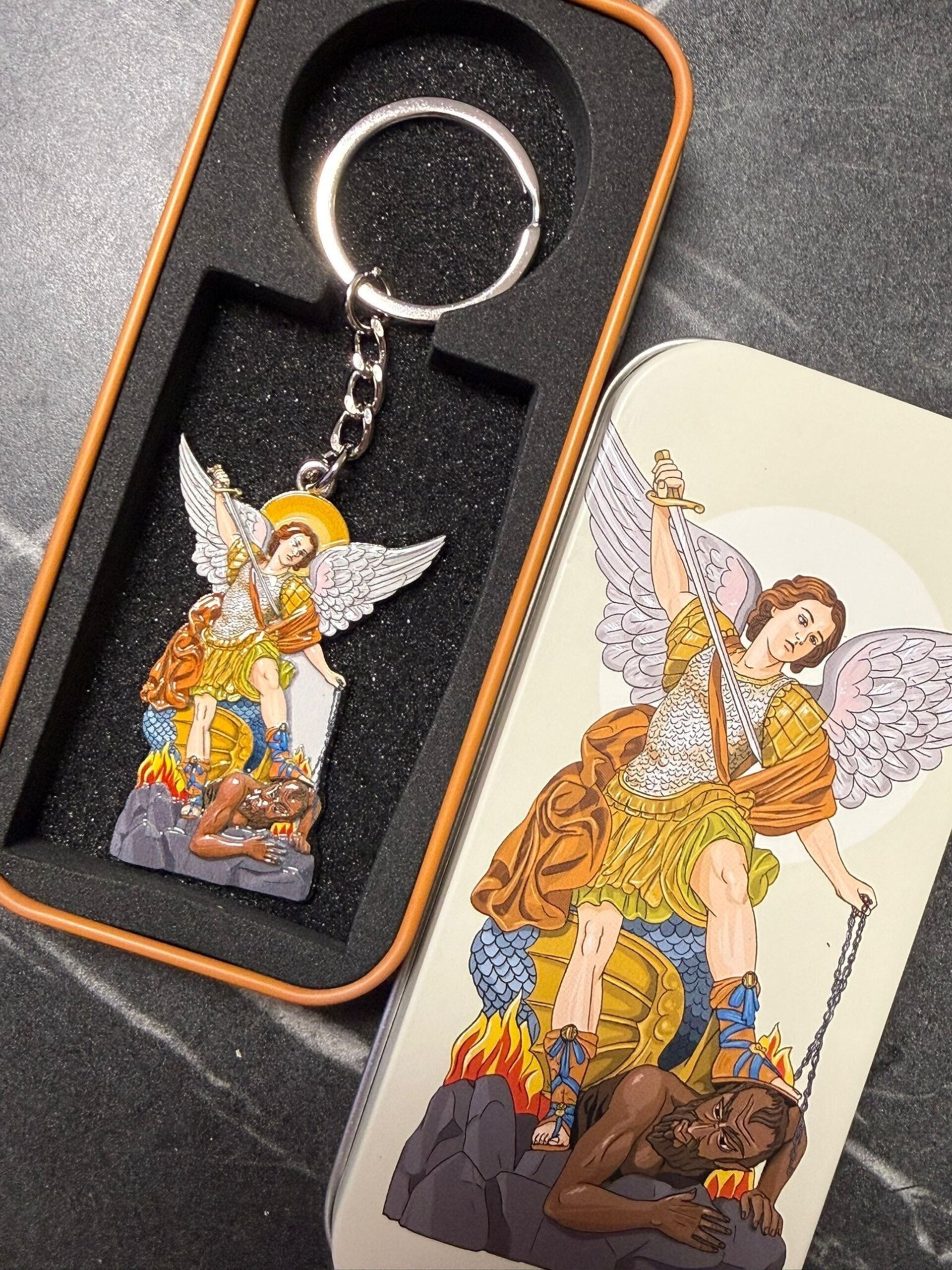 Llavero San Miguel Arcángel en lata