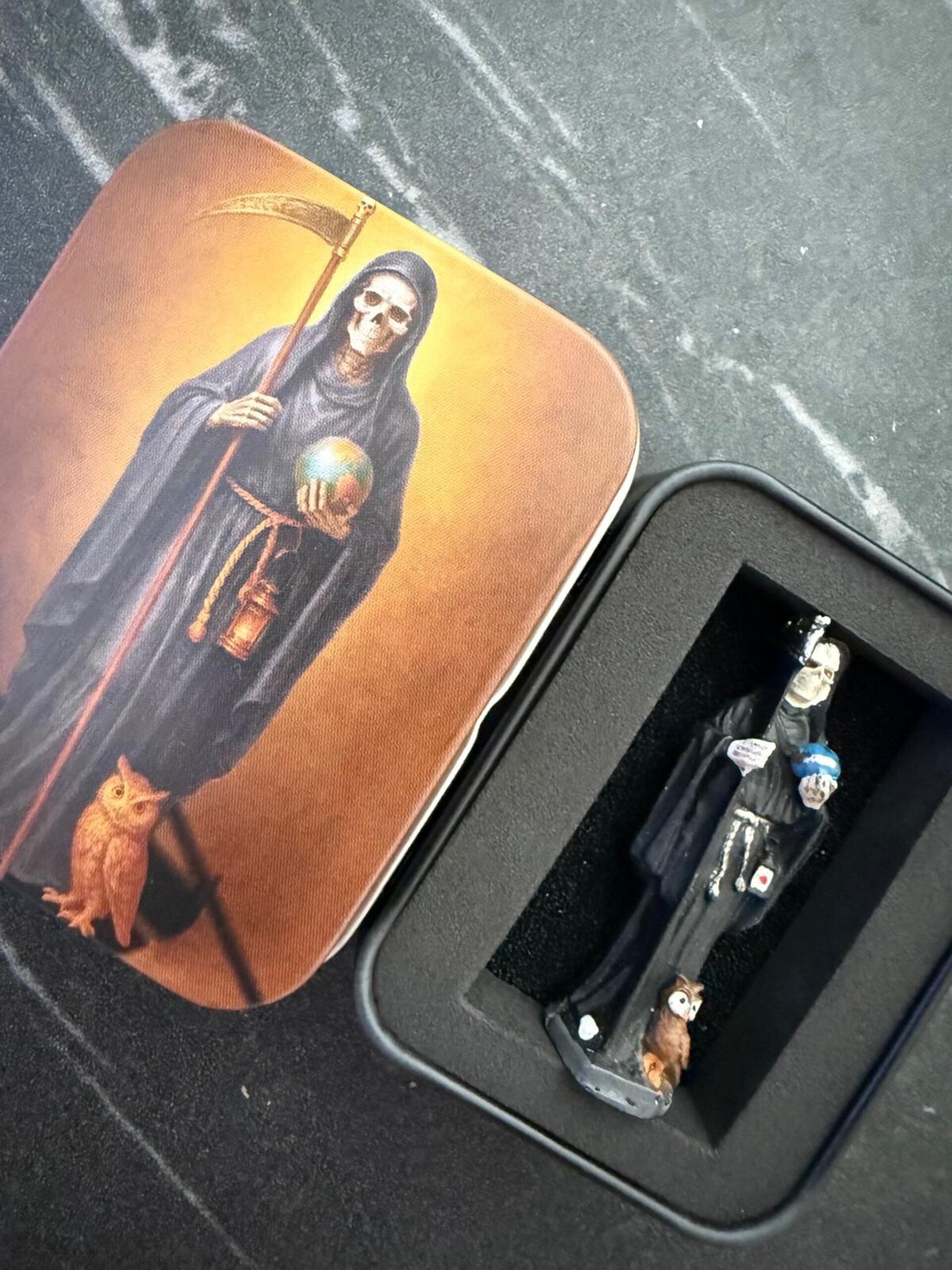 Imagen Santa Muerte Negra 5cm en lata
