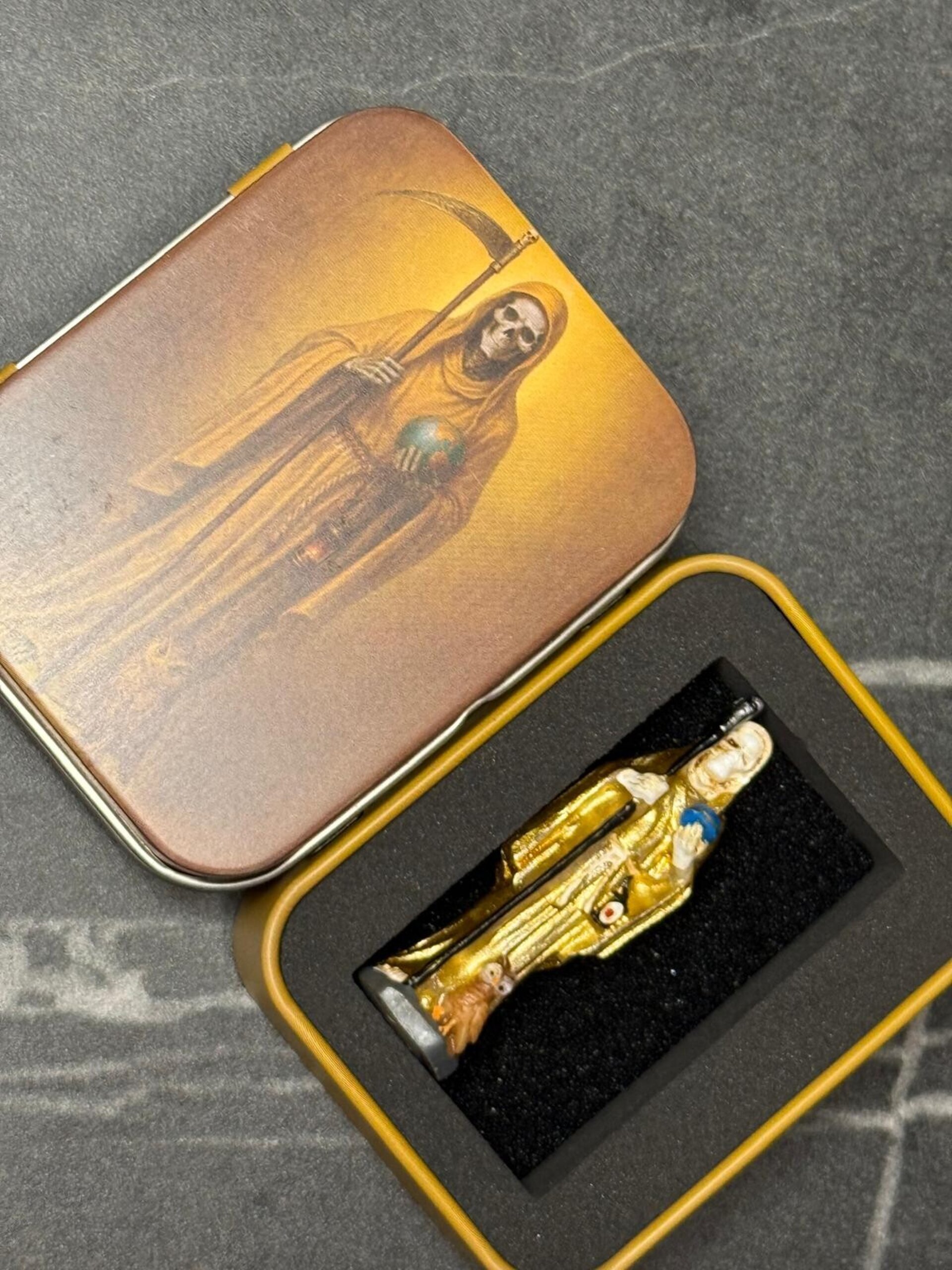 Imagen Santa Muerte 5cm Dorada en lata